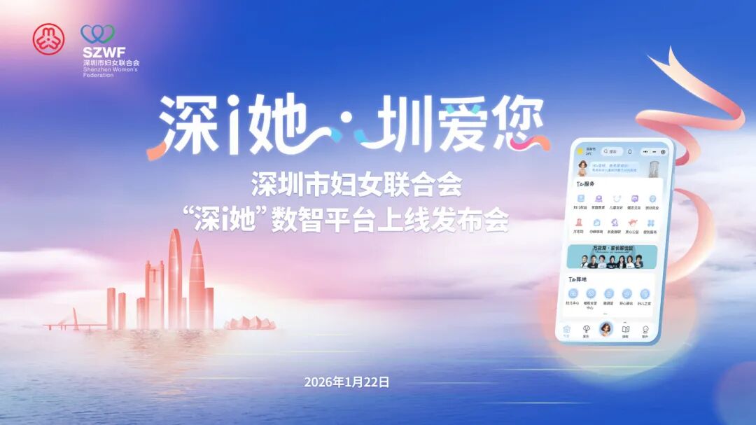 1月22日上午,深圳市妇女联合会在市妇儿大厦举行“深i她”数智平台上线发布会,标志着深圳妇女儿童家庭服务全面迈入“数智融合”新阶段。