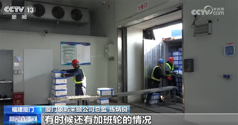 厦门象屿采颐公司总监 练炳良:船舶往来增加了不少,像今天连续迎来三艘货轮的场景,这个月已经出现两次了,有时还有加班轮的情况。货轮从靠泊、装货再到出发,停留时间基本都是一至两个小时,边检等口岸部门的高效通关是关键。