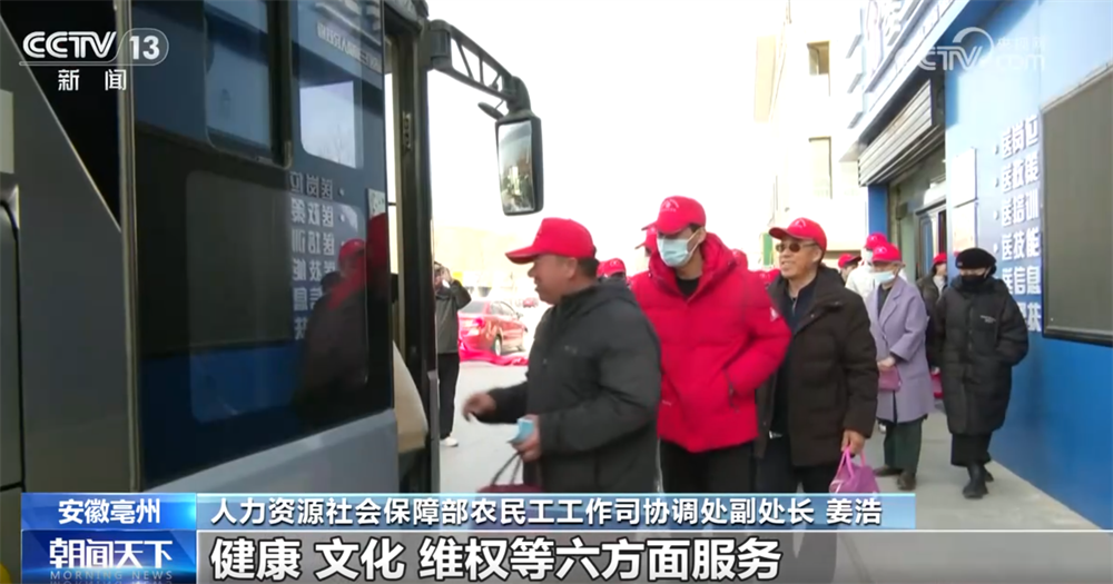 央视网消息:春节前后是农民工集中出行期、换岗高峰期。1月24日,人力资源社会保障部、民政部、交通运输部等11个部门在安徽亳州启动2026年“春暖农民工”服务行动,为农民工提供多种服务保障。