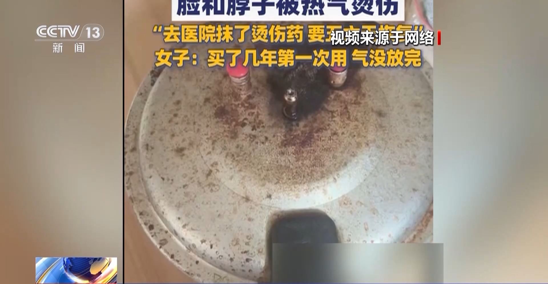 当事人 张女士:高压锅得排气,有个小红盖掉下去了,我以为是没气了,但是这么一碰就炸了,排气没排干净。