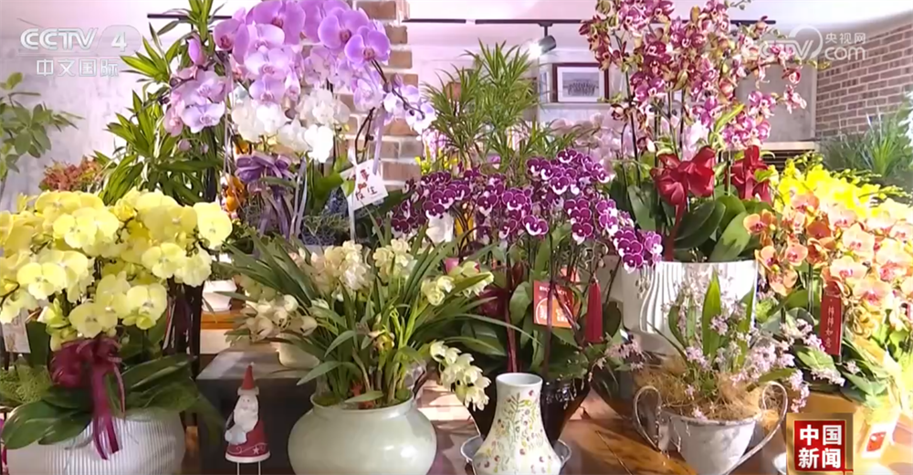 在浙江温岭,五彩斑斓的年宵花摆满展台,不少市民前来挑选心仪的花卉。