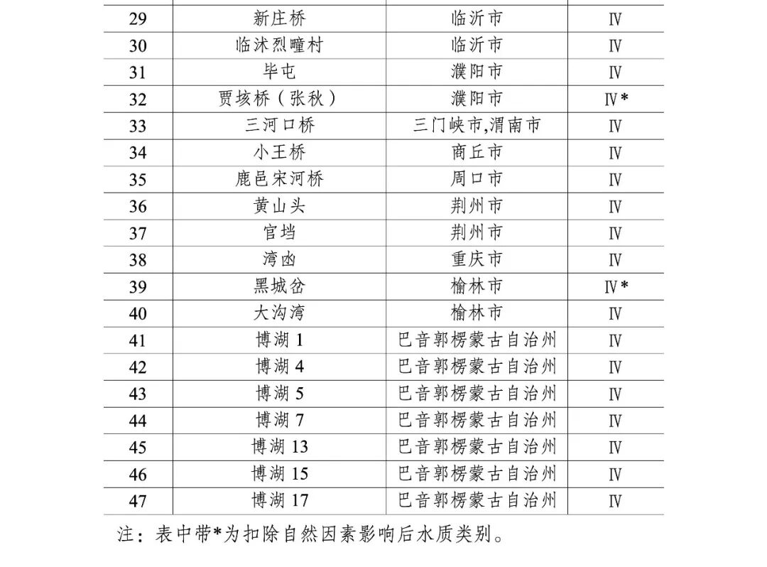 第四季度,3641个国家地表水考核断面中,水质优良(Ⅰ—Ⅲ类)断面比例为91.5%,同比上升2.2个百分点;劣Ⅴ类断面比例为0.5%,同比下降0.2个百分点。主要超标指标为化学需氧量、高锰酸盐指数和总磷。