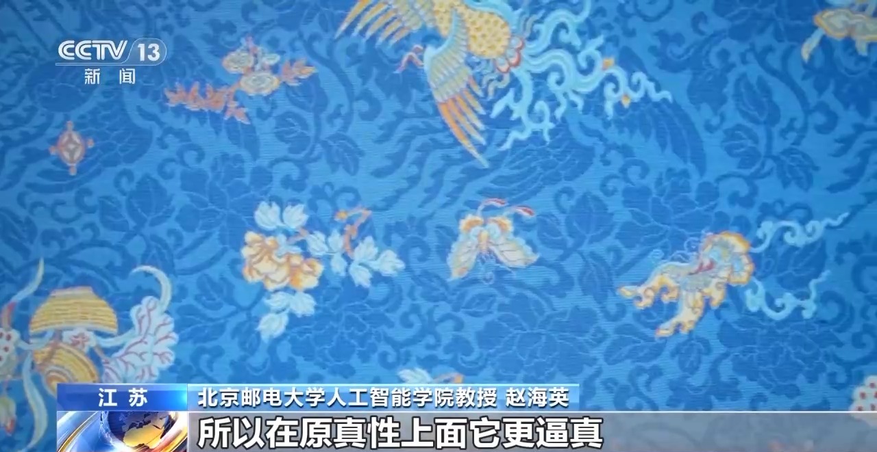 北京邮电大学人工智能学院教授 赵海英:它可以在可见光增强、不可见光可以看得见,所以就可以把很多丝绸文物的纹理肌理就能采集到,我们目前是把多个波段的照片合成了一张,所以在原真性上面,它更逼真。