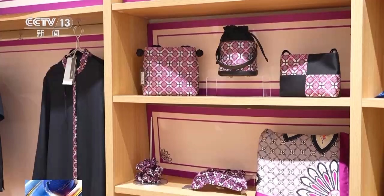 苏州丝绸博物馆馆长 钱兆悦:基于我们馆藏清代的一个瓣形云肩,把它的颜色和纹样进行了一个解构和再提取,形成了一个以紫色为主题的新中式的产品,我们也会把数据库里的这些江南丝绸的色谱提供给更多的时尚设计师,让他们来进行创意,变成这一类新中式的文创产品,能够进入到我们大家的日常生活里面去。