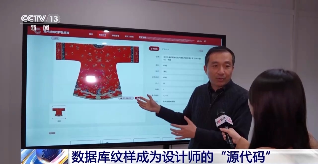 在苏州,由博物馆、企业、高校合作已经组建起“丝绸文化数字中心”,在这里,工作人员正为每一件丝绸文物建立精准的数字档案。