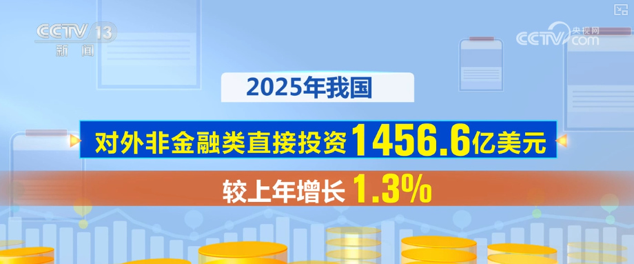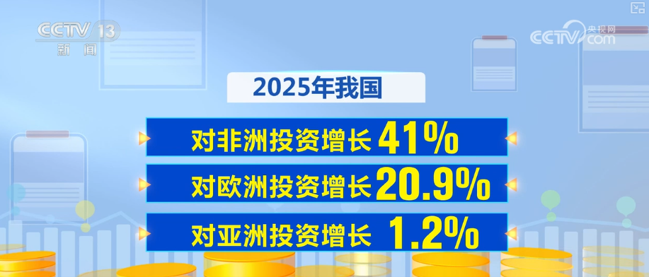数据显示,2025年我国对外非金融类直接投资1456.6亿美元,较上年增长1.3%。对非洲、欧洲、亚洲投资分别增长41%、20.9%和1.2%。