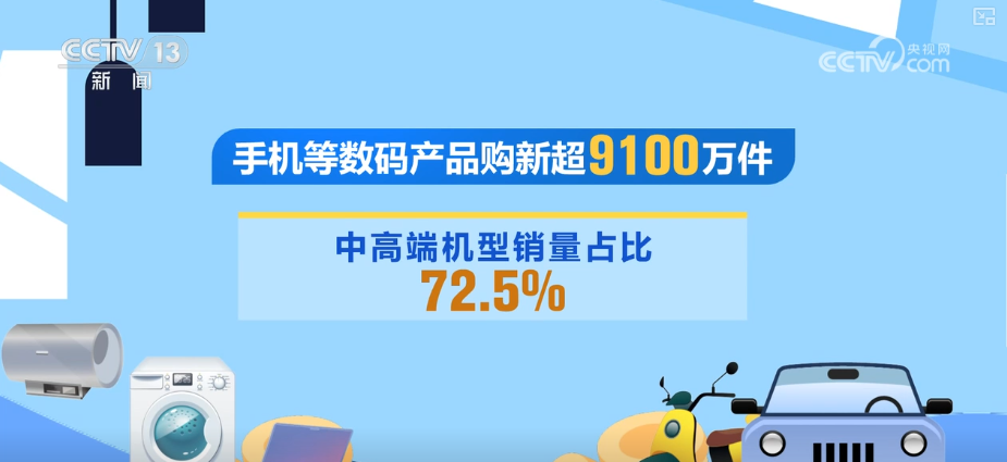 初步统计,2025年,消费品以旧换新相关产品销售额超2.6万亿元,惠及超3.6亿人次。其中,汽车以旧换新超1150万台,新能源汽车在汽车以旧换新中的销售占比达到近60%;家电以旧换新近1.3亿台,一级能效(水效)产品占比超90%;手机等数码产品购新超9100万件,中高端机型销量占比达72.5%。在以旧换新政策带动下,相关商品销售额持续增长。