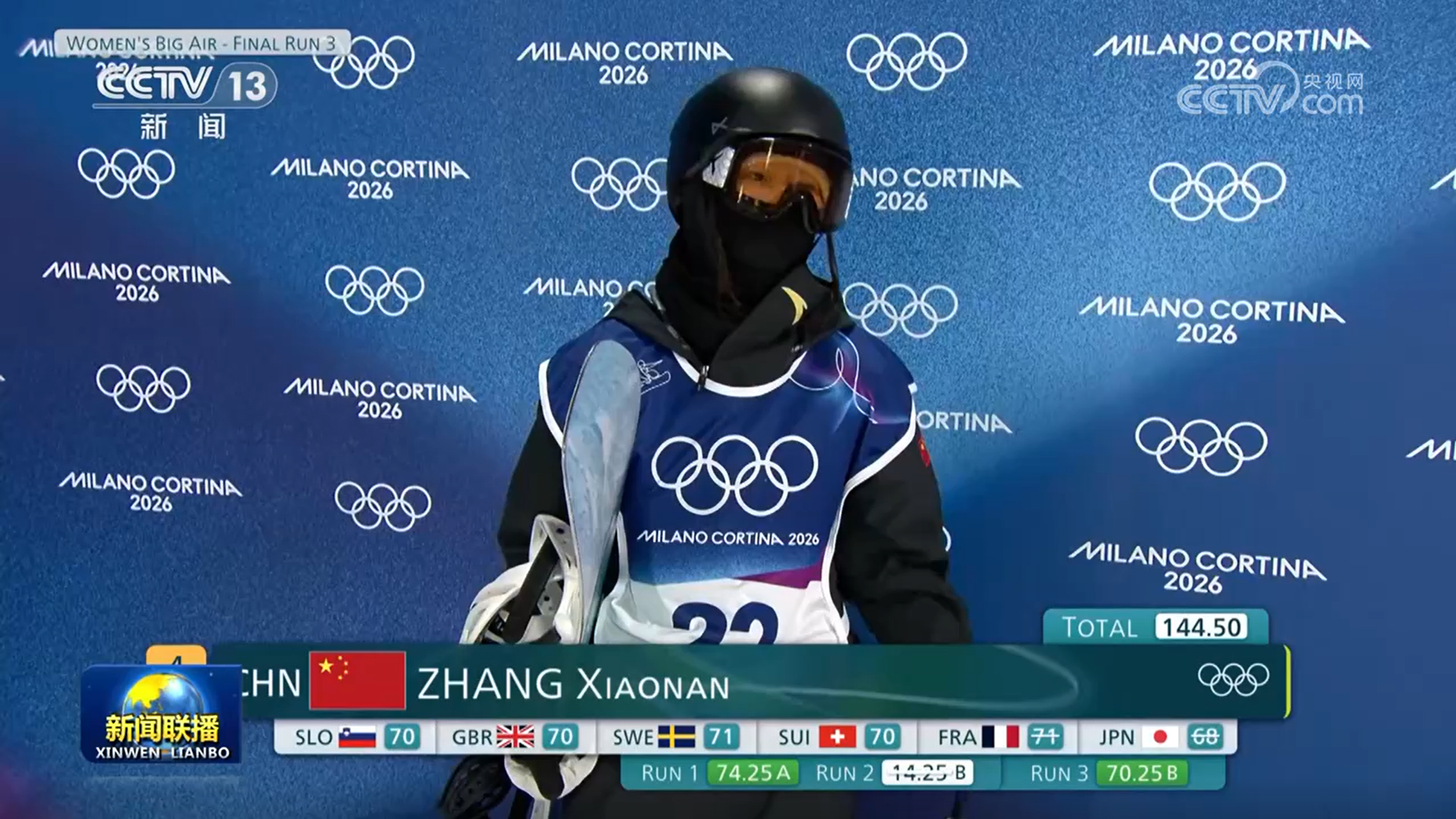 央视网消息(新闻联播):当地时间9日,米兰冬奥会继续第三个比赛日的争夺。在自由式滑雪女子坡面障碍技巧决赛中,谷爱凌凭借第一轮获得的86.58分,获得该项目的银牌,这是本届冬奥会中国体育代表团的第二枚奖牌,另外一位中国选手刘梦婷获得第五名。在单板滑雪女子大跳台决赛中,首次参加冬奥会的19岁小将张小楠,以两轮动作144.50的总分获得第五名,追平中国队该项目的历史最好成绩。