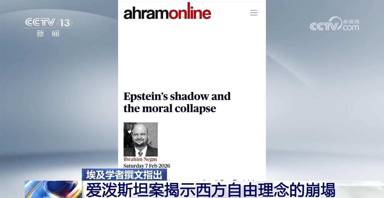 央视网消息:埃及《金字塔报》网络版日前刊发埃及学者易卜拉欣·纳吉姆的文章《爱泼斯坦的阴影与道德沦丧》。文章说,已故美国富商杰弗里·爱泼斯坦所涉一系列丑闻的曝光,揭示了西方精英阶层的系统性道德沦丧和“西方自由主义理念的崩塌”。