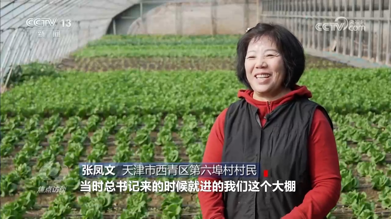 天津市西青区第六埠村村民张凤文:“总书记来的时候就进的我们这个大棚,总书记问了我们受灾情况,蔬菜的收成,还嘱咐我们要用自己的双手重建家园,创造更美好生活。”