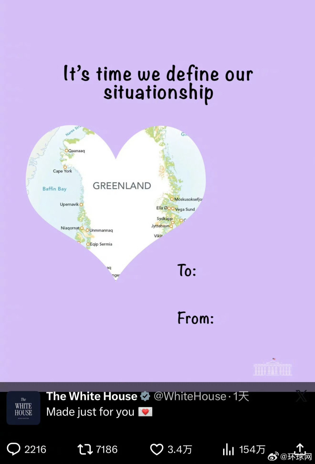 ·强行“示爱”格陵兰、调侃鲁比奥,白宫情人节“贺卡”引争议。