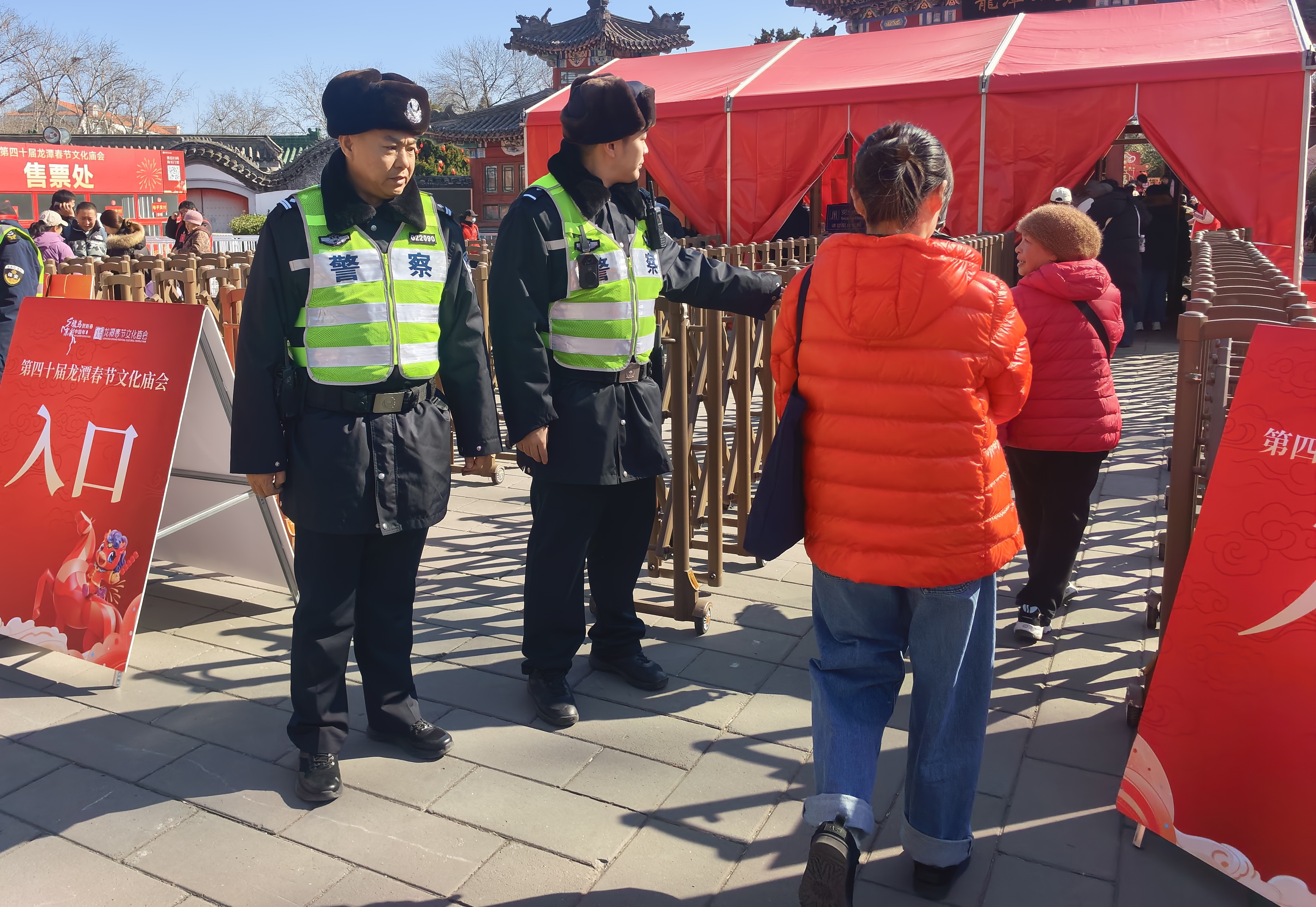 自春节假期开始,东城警方全力以赴、坚守一线,在龙潭庙会的喧腾市井里,在天坛公园的红墙碧瓦间,从现场秩序维护到人流疏导,从园区动态巡控到周边区域整治,每一处重点部位、每一个关键节点,都有藏蓝身影默默守护,让安全感在熙攘人流中可触可感。