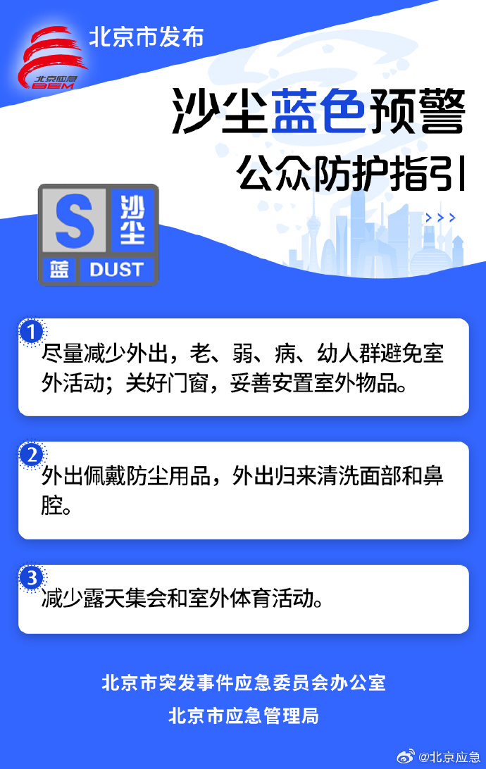 北京市发布沙尘蓝色预警