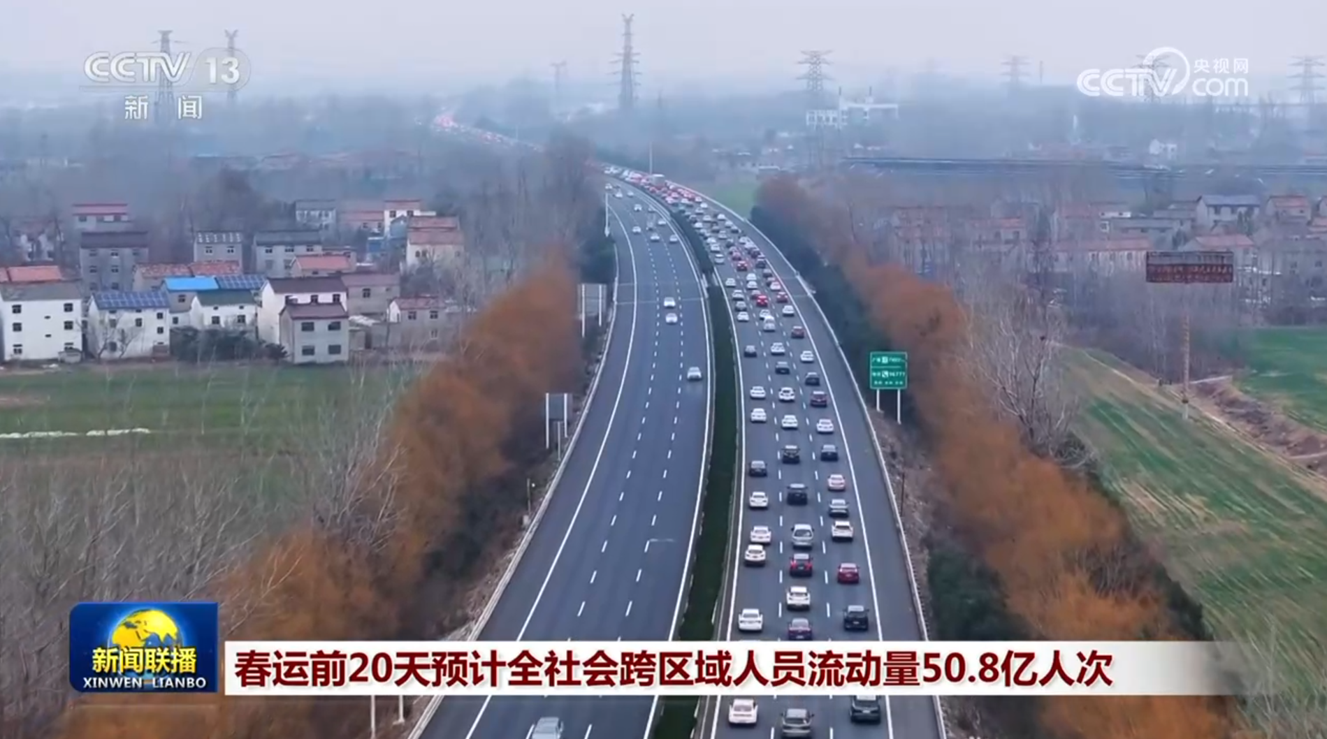 央视网消息(新闻联播):2026年春运过半,春运前20天预计全社会跨区域人员流动量达50.8亿人次,日均2.5亿人次,创下历史同期新高。