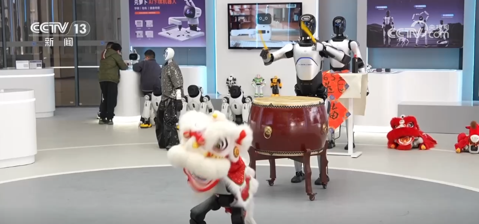 新春佳节,在江苏无锡的这家具身智能机器人体验中心,游客人头攒动、络绎不绝,机器人正敲着欢腾的锣鼓,跳起节奏明快的舞蹈,迎接纷至沓来的市民游客。