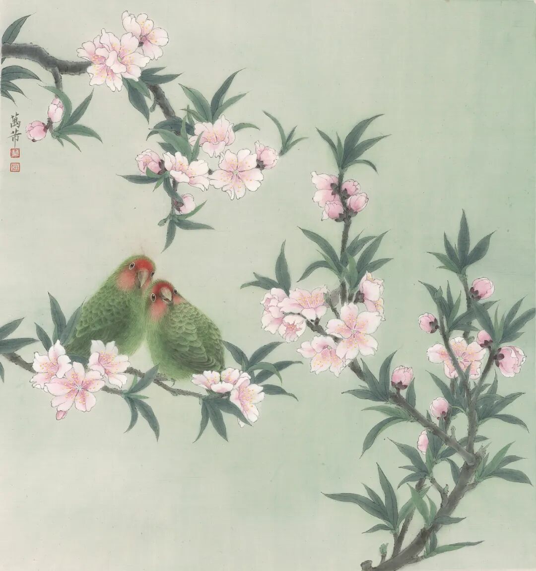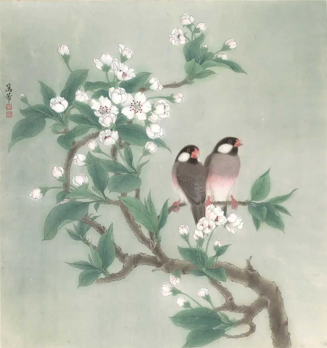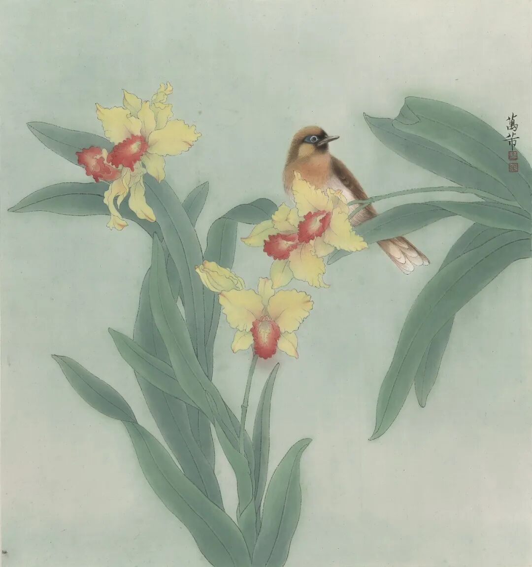 万芾是上海实力派花鸟画家,她笔下“花鸟世界”中的二十四节气,作品色彩丰富,构图现代而不失传统韵味。