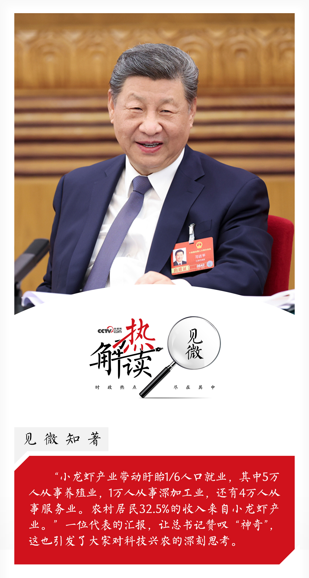热解读2026年3月5日,习近平总书记参加他所在的十四届全国人大四次会议江苏代表团审议。听取了全国人大代表、江苏省淮安市委书记史志军汇报的盱眙小龙虾产业富民账后,总书记用“神奇”两个字点赞。