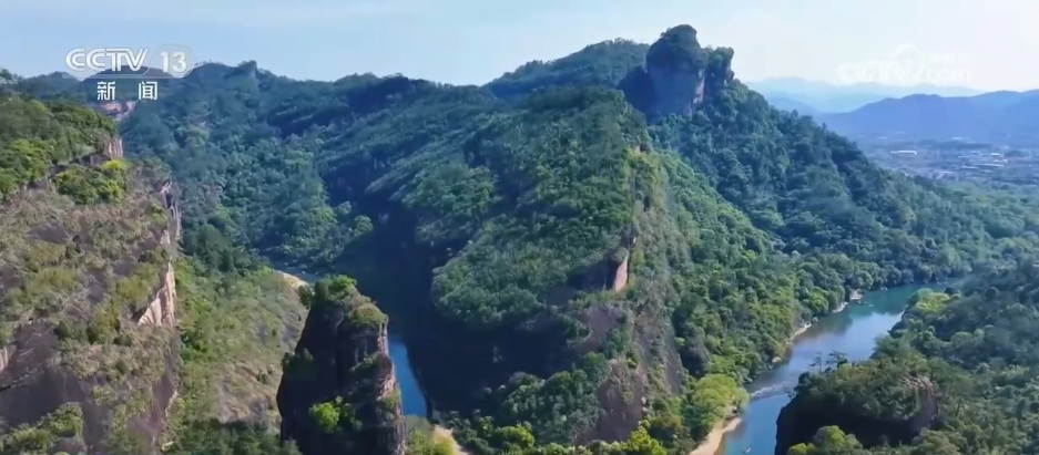 从武夷山北站下车,记者来到了武夷山清献大道的一处赏花点。您看,这些粉似云霞的樱花和连绵起伏的山景巧妙地融合在了一起,就像大自然被打翻了调色盘,形成了强烈的色彩碰撞。漫步在樱花林间,微风轻拂,落英缤纷,最特别的是,在这儿你能拍到花海与列车同框的照片。
