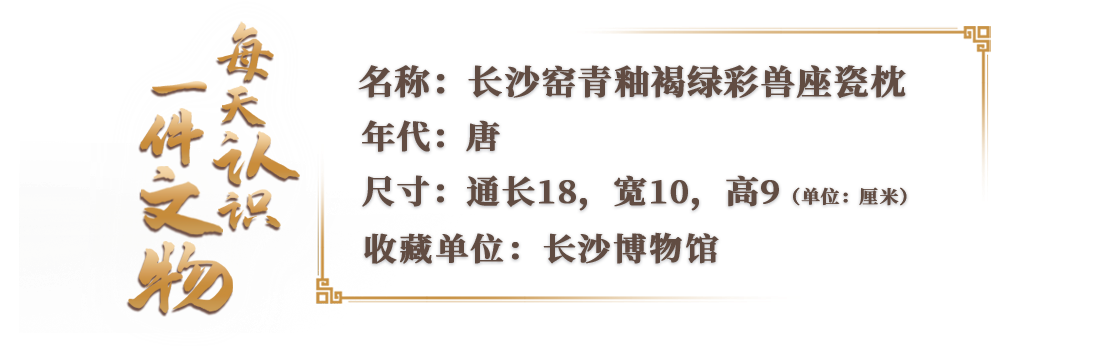 △长沙窑青釉褐绿彩兽座瓷枕,长沙博物馆藏