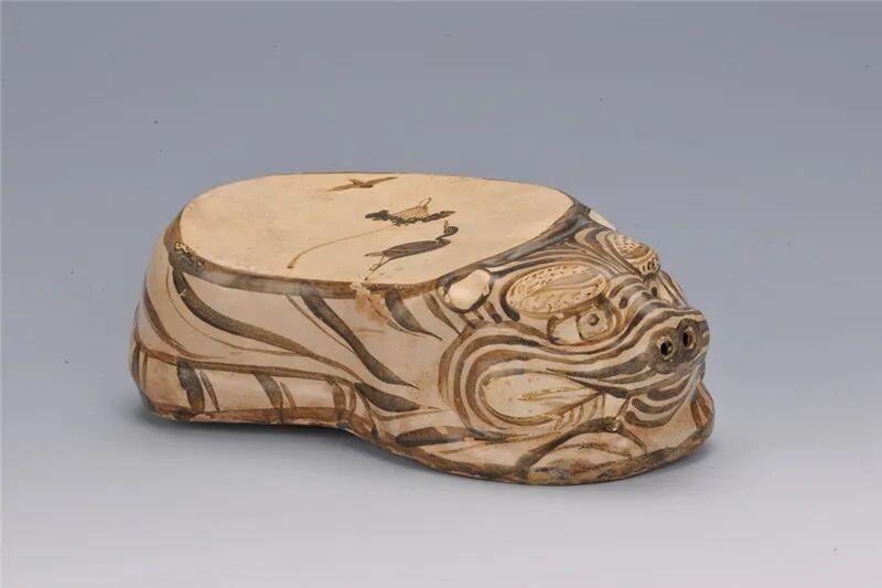 △白地绘荷鹤纹虎形枕,南越王博物院藏