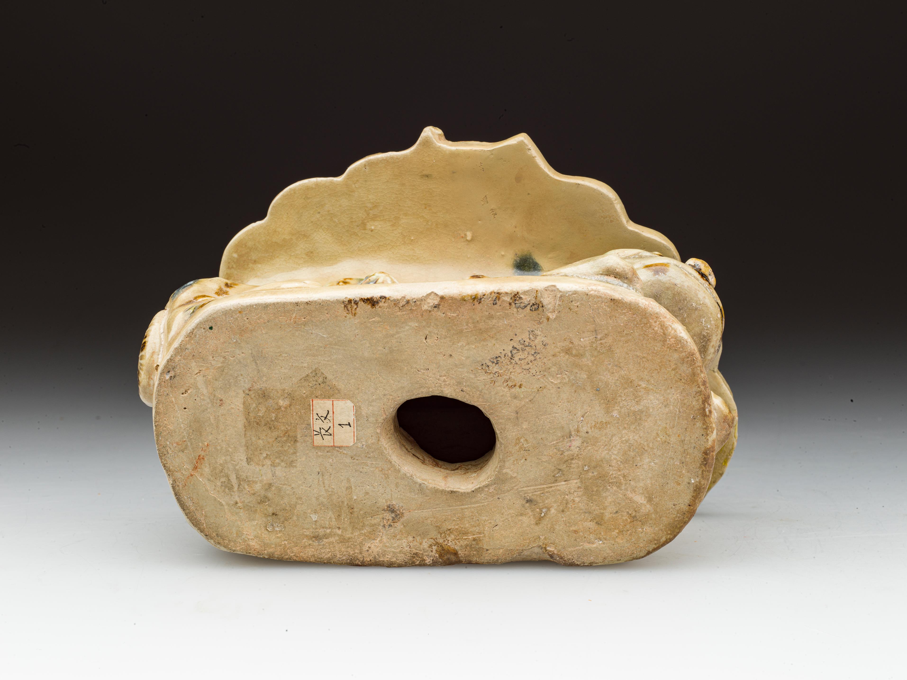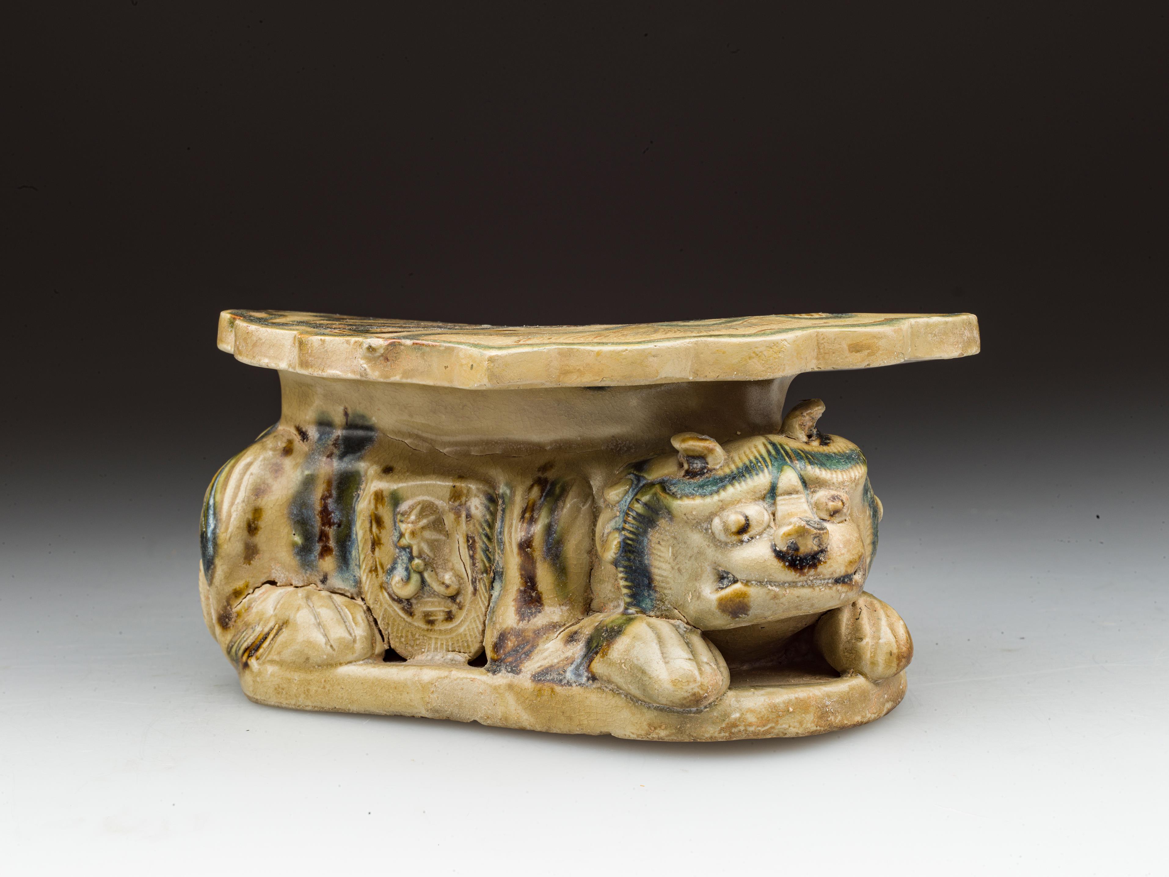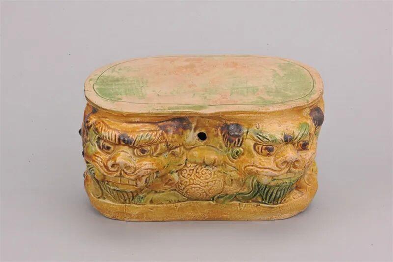 △三彩素面双狮座瓷枕,南越王博物院藏