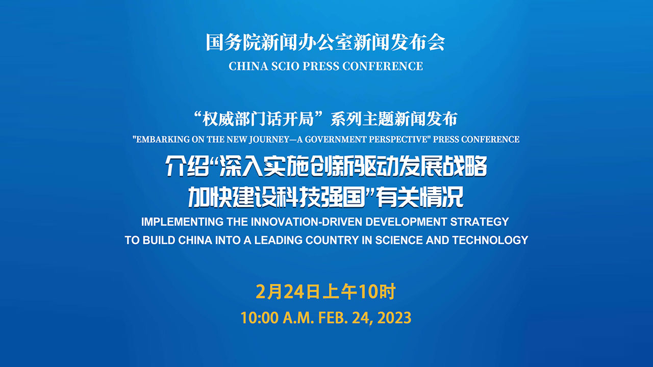 国务院新闻办公室定于2023年2月24日(星期五)上午10时举行“权威部门话开局”系列主题新闻发布会,请科学技术部部长王志刚介绍“深入实施创新驱动发展战略,加快建设科技强国”有关情况,并答记者问。