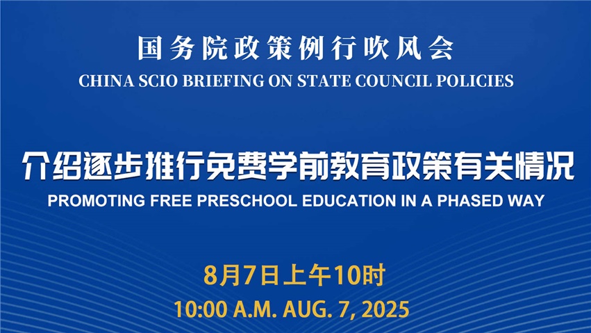国务院新闻办公室于2025年8月7日(星期四)上午10时举行国务院政策例行吹风会,请财政部副部长郭婷婷和教育部有关负责人介绍逐步推行免费学前教育政策有关情况,并答记者问。