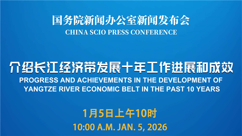 国务院新闻办公室于2026年1月5日(星期一)上午10时举行新闻发布会,请国家发展改革委副主任王昌林和生态环境部、交通运输部、水利部、农业农村部有关负责人介绍长江经济带发展十年工作进展和成效,并答记者问。