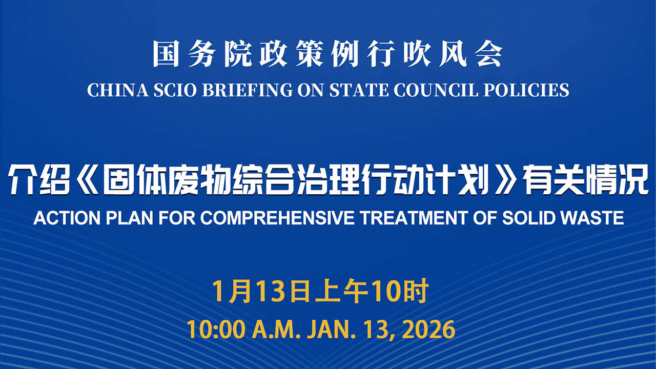2026年1月13日(星期二)上午,国务院新闻办公室举行国务院政策例行吹风会,请国家发展改革委副主任周海兵、生态环境部副部长李高和工业和信息化部、住房城乡建设部、农业农村部有关负责人介绍《固体废物综合治理行动计划》有关情况,并答记者问。