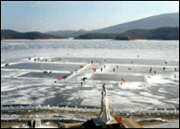 镜泊湖水产丰富,这长达百里的淡水湖,是个良好的天然渔场。鱼类品种很多,有红尾、大白鱼、鳜鱼、鲫鱼、鲤鱼等,其中湖鲫最为有名,鳞黄鳍红,肉嫩味鲜,曾列为封建皇朝的贡品。