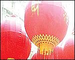 为制造节庆气氛,商家还把小灯笼三、五个串起来,底下垂着金黄色的穗子,可以高高挑在屋檐或房间作为装饰,也可以高高悬挂在阳台上,耀眼夺目,增添一派喜气。