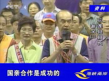 特约评论员:应该说花莲本来是泛蓝的天下,花莲是从来没有发生过政权更替的惟一的一个县,但是花莲本身由于这一次民进党,国民党提名比较仓促,国民党和亲民党,所以谢深山作为候选人来讲,在地方上受到,原来国民党泛蓝,一部分人的抵制,所以就有前任的县长的夫人,一度传出来要受民进党征召,替民进党来选。是这样。后来这个被泛蓝整合了,整合了以后,他暗中还是有一点挺游盈隆,另外就是泛蓝亲民党吴国栋,他是国民党员,但是基层的力量是亲民党的力量,他违背国民党的党籍,坚持要参选,这样的话就造成,因为他背后支持他吴水云是亲民党的骨干了,所以就被变成一个指标,就是看亲民党和国民党能不能真正合作。