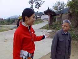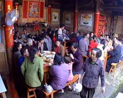 刚才好响的鞭炮声啊,我经过这儿突然发现里边有一户人家正在祝寿,那我现在就进去凑个热闹,也沾点喜庆。