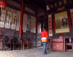客家人有求神不如拜祖的说法,他们把自家的先人供奉在家中,每天早晚拜祭。除此之外,在培田现今还保存着20多座宗祠,其中最能光耀祖宗门楣的要算是三品蓝翎侍卫武进士吴拔桢的堂号务本堂了。务本呢,人以孝弟为本,孝那就是对长辈要尊敬,对父母要孝顺,那么弟呢,就是兄弟之间要和睦团结,这就是那个武进士,他是正三品御前前值殿侍卫,这个时候是71岁告老还乡的时候坐在这边请画师写生画的像。