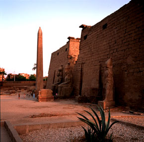 凯尔奈克是经历许多代法老而修建成的一个神庙群。它占地50多万平方米,包括庭院和一个人工湖,列柱厅仅是凯尔奈克的一部分,但是它大得已经可以装下伦敦的圣保罗大教堂和罗马的圣彼德大教堂了。过去这上面是有屋顶的,但是公元前27年的大地震使得这个厅仅剩下这100多根柱子了。在列柱厅的后面有两个方尖碑,其中一个是公元前1480多年前的哈采谢普斯特女王的,上面有许多象形文字,现在已经被翻译过来,是这样记录的,今天到过凯尔奈克的人已被几千年前的女王不幸言中了,相信您去过埃及,到了卢克索,一定会觉得不虚此行。