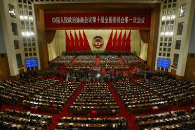 The First Session of the 10th National Committee of the Chinese People's Political Consultative Conference (CPPCC), China's top advisory body, opened in the Great Hall of the People in downtown Beijing Monday afternoon.