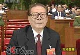President Jiang Zemin is listening at the the First Session of the 10th NPC