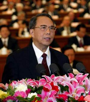 Zeng Peiyan, minister in charge of the State Development Planning Commission dlivers the Report on the Implementation of the 2002 Plan for National Economic and Social Development and on the 2003 Draft Plan for National Economic and Social Development at the second plenary session of he First Session of the 10th National People's Congress (NPC) held in Beijing Thursday morning..