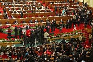 Deputies to the ongoing National People's Congress session are voting at the sixth plenary meeting of the First Session of the 10th National People's Congress in Beijing Sunday morning.