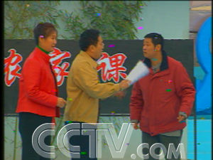 兴化的农民中有许多种粮大户,养殖大王,艺术团把他们的故事编进小品,在演出前,小品演员句号、赵亮见到了真正的西红柿大王。