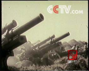 步兵在战壕里趴着,我们去把这个,(战士)露着半截身,在战壕里头。以后我们用炮、机枪把他消灭了,消灭了以后,步兵他们有指挥的,拿着个旗一指挥步兵上去了,上去了以后,就架着这个秫秸就往河里扔。