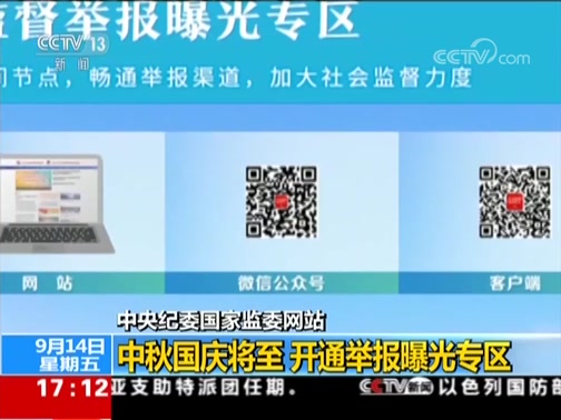 中央纪委国家监委网站 中秋国庆将至 开通举报曝光专区
