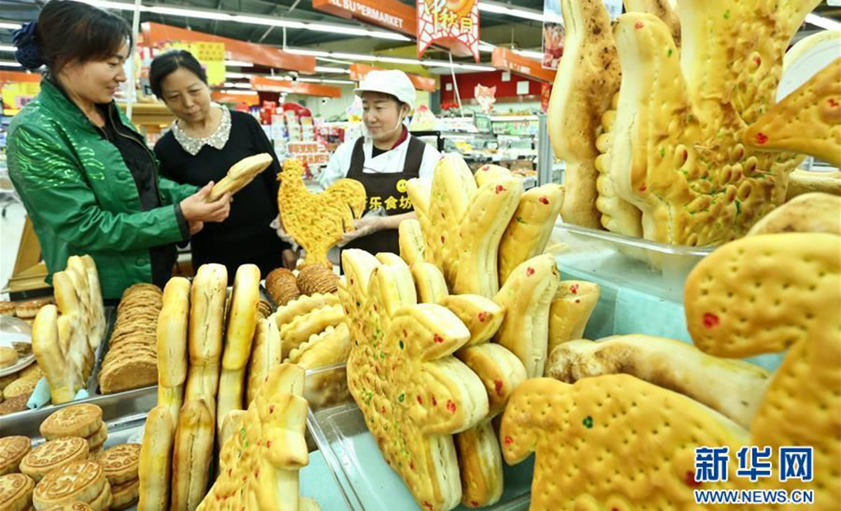 9月18日,在甘肃张掖一家超市,市民在选购“土月饼”。