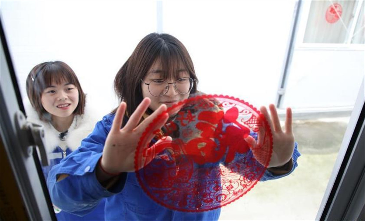 2月5日,中铁八局建设者在项目部贴窗花。当日,在贵阳轨道交通3号线中铁八局项目部内,来自五湖四海的一百多名职工一起贴春联、写福字、做家乡菜,品尝家乡味道,感受新春温暖。
