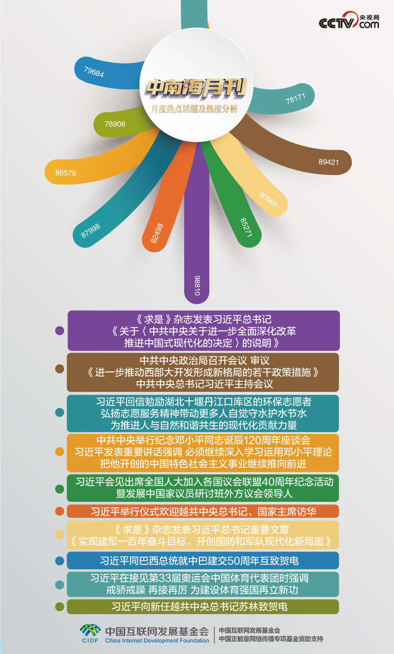 央视网《中南海月刊》运用智能大数据,与您一同回顾总书记的八月足迹。