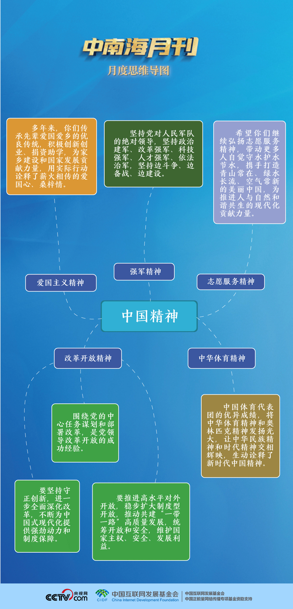 点赞祖籍宁波的香港企业家用实际行动诠释了薪火相传的爱国心、桑梓情,在八一建军节之际在《求是》杂志发表重要文章强调“必须贯彻新时代党的强军思想”,勉励湖北省十堰市丹江口库区的环保志愿者用心用情守护一库碧水,在多个场合强调要运用好已有的改革成果和重要经验进一步全面深化改革,祝贺第33届夏季奥林匹克运动会中国体育代表团全体成员取得我国参加夏季奥运会境外参赛历史最好成绩……本月,总书记多次结合生动案例阐释汲取精神力量、砥砺奋进前行的重要意义。
