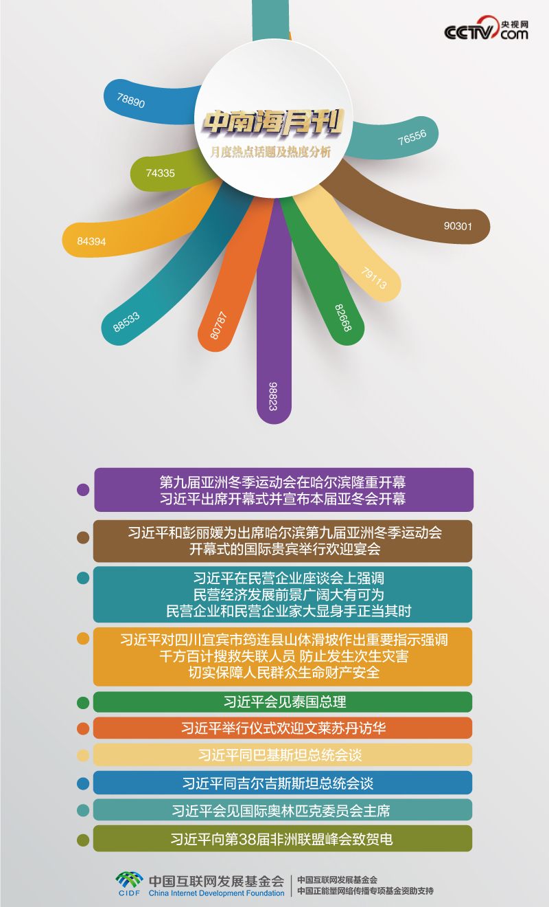 央视网《中南海月刊》运用智能大数据,与您一同回顾总书记的二月。