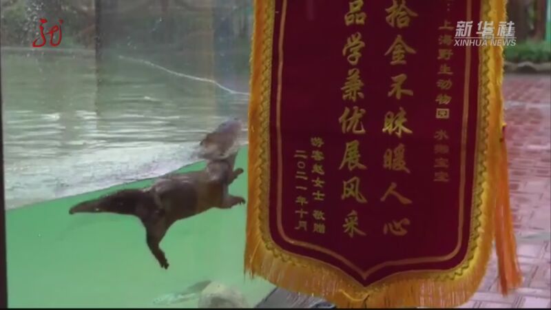 上海野生动物园:“拾金不昧”的小爪水獭收到了锦旗