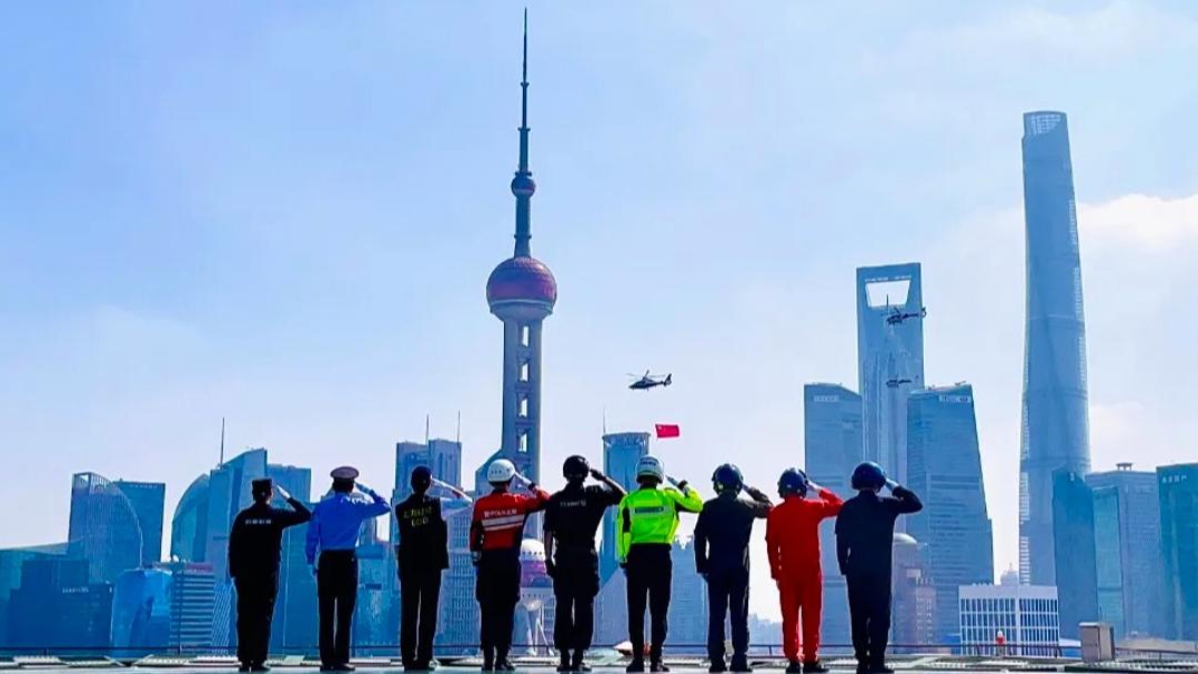 迎国庆,沪公安警用直升机挂国旗巡飞!